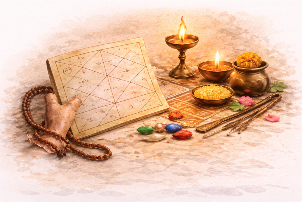 Astrology remedies are Vedic practices designed to balance planetary influences and reduce negative effects shown in your birth chart.